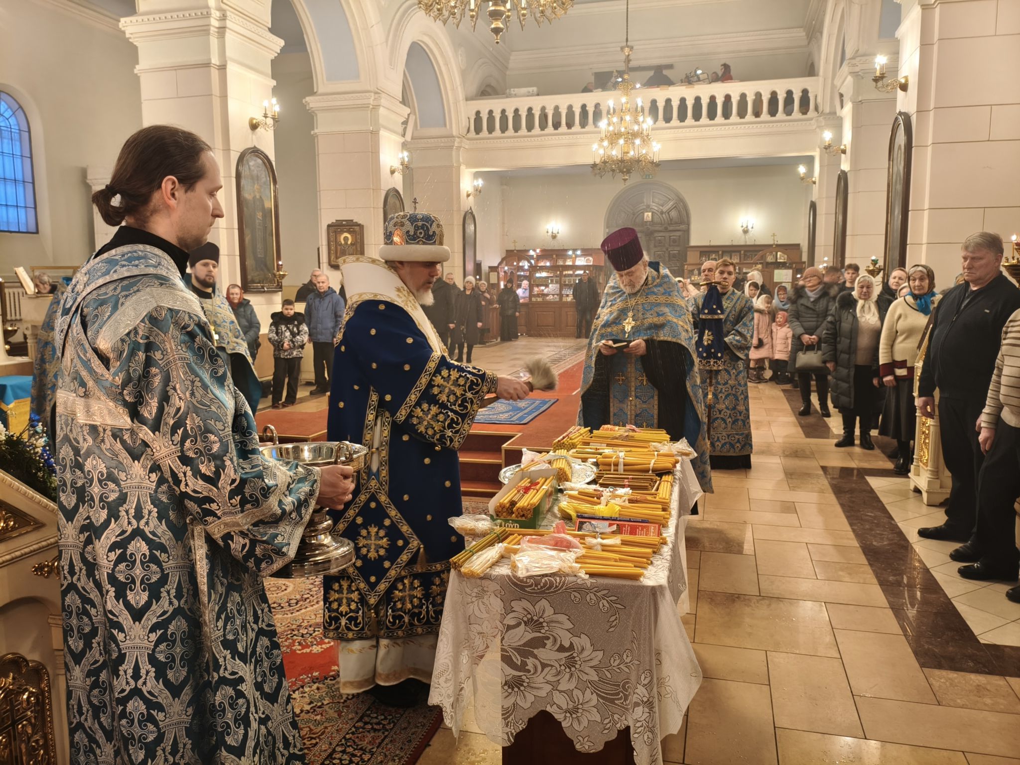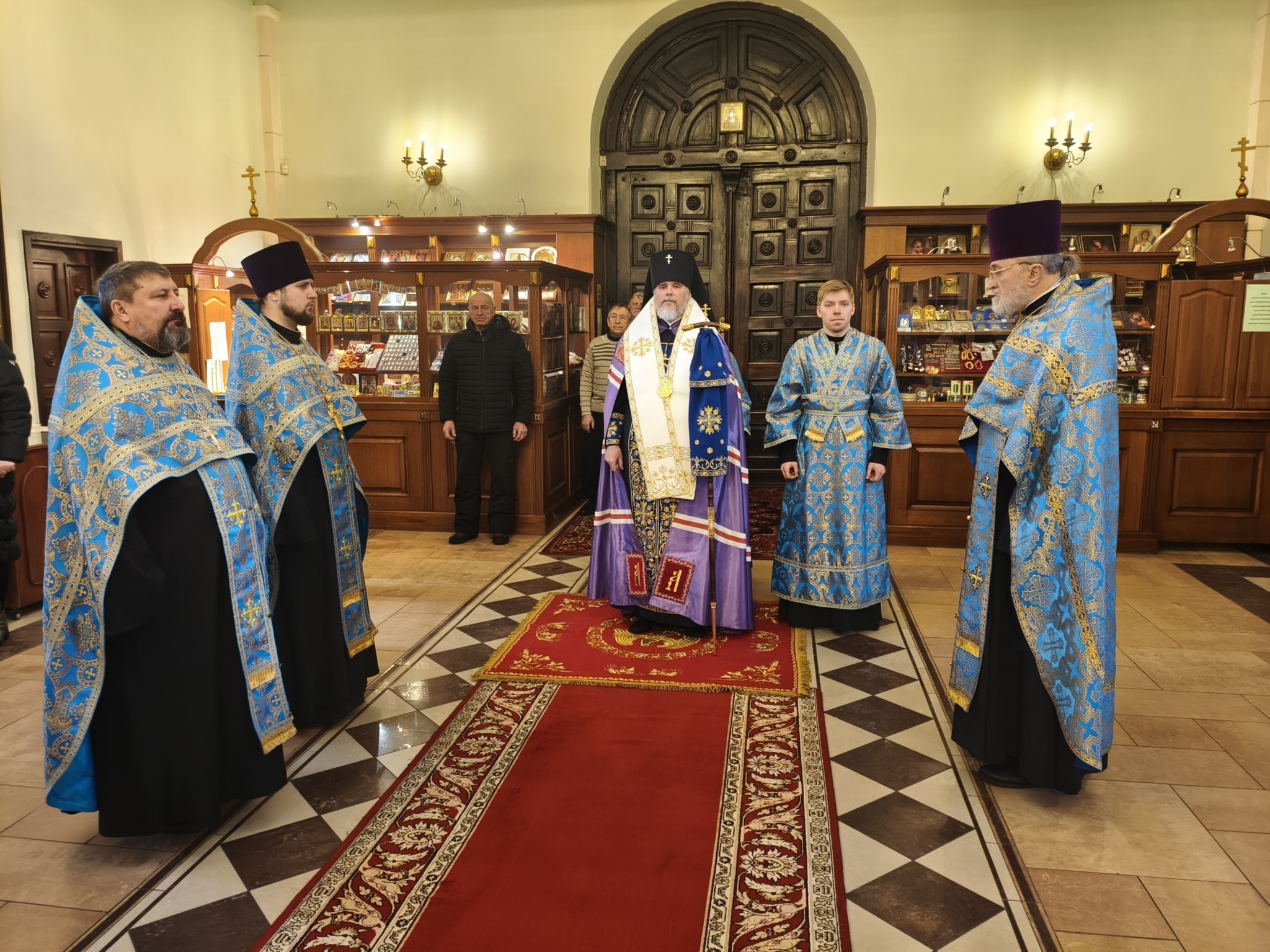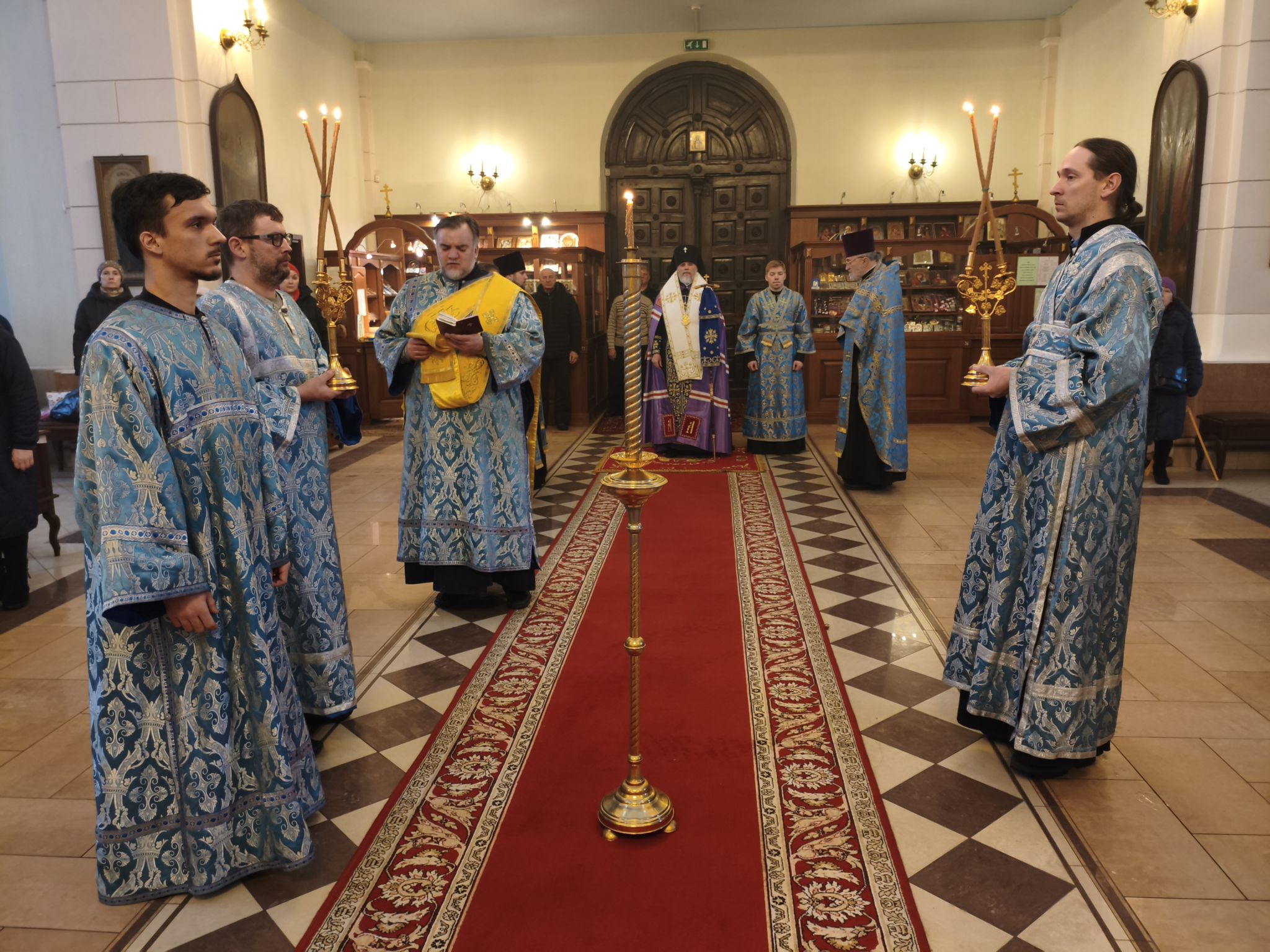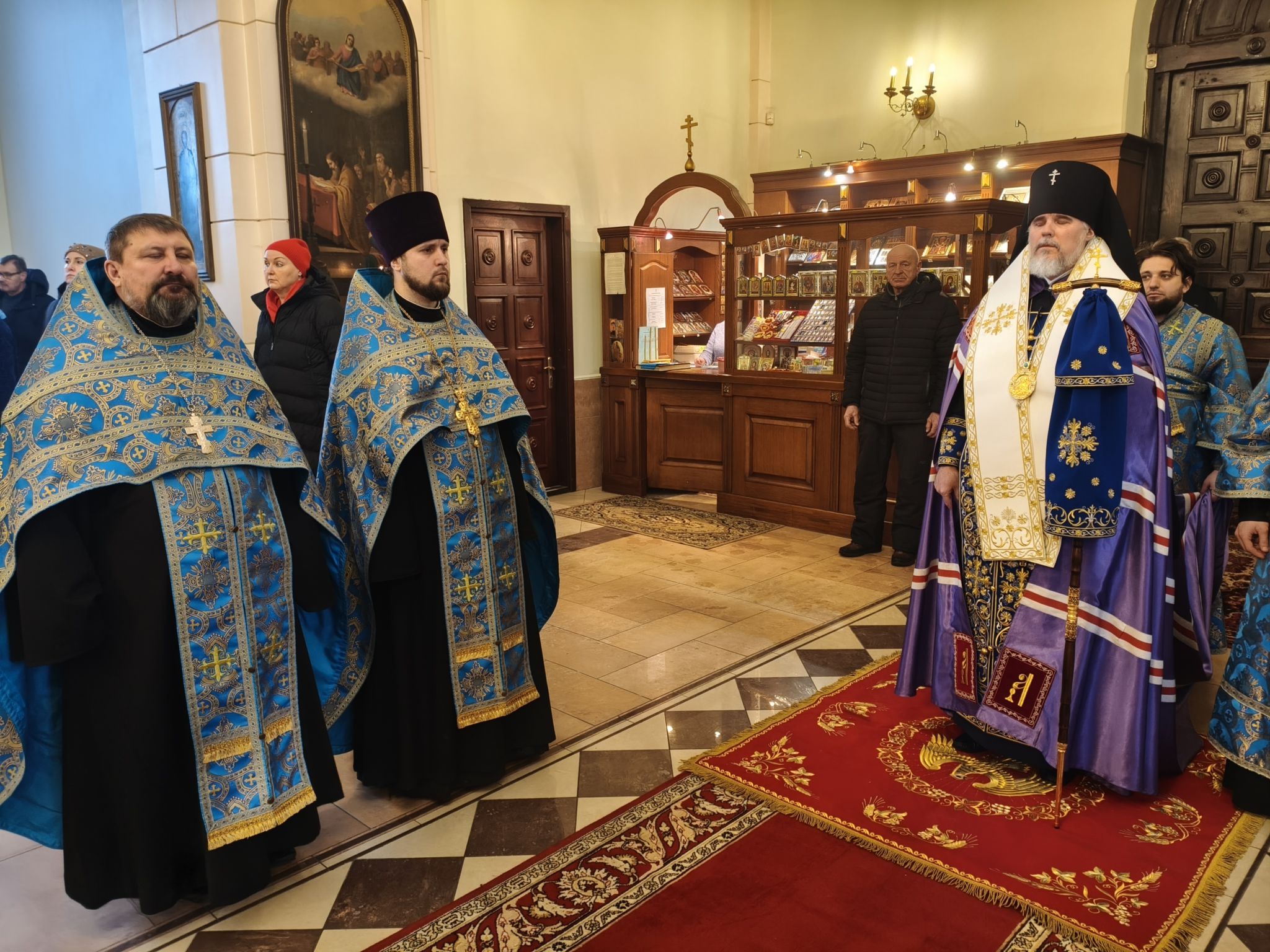 Вечером 14 февраля 2026 года, когда Церковь вступает в празднование двунадесятого торжества Сретения Господня и одновременно воспоминает Страшный Суд (Неделя мясопустная), в кафедральном соборе святых страстотерпцев Бориса и Глеба было совершено праздничное Всенощное бдение.