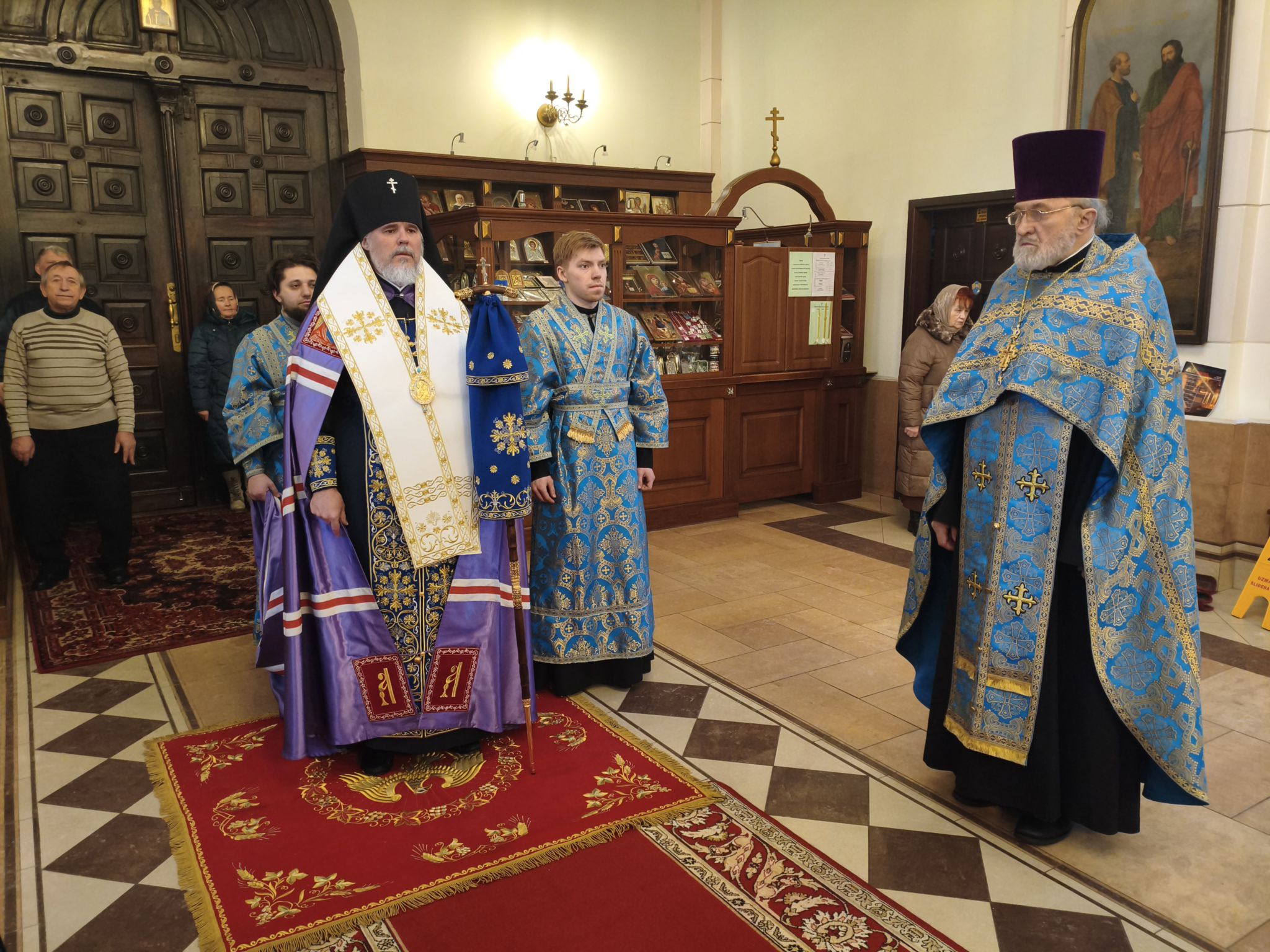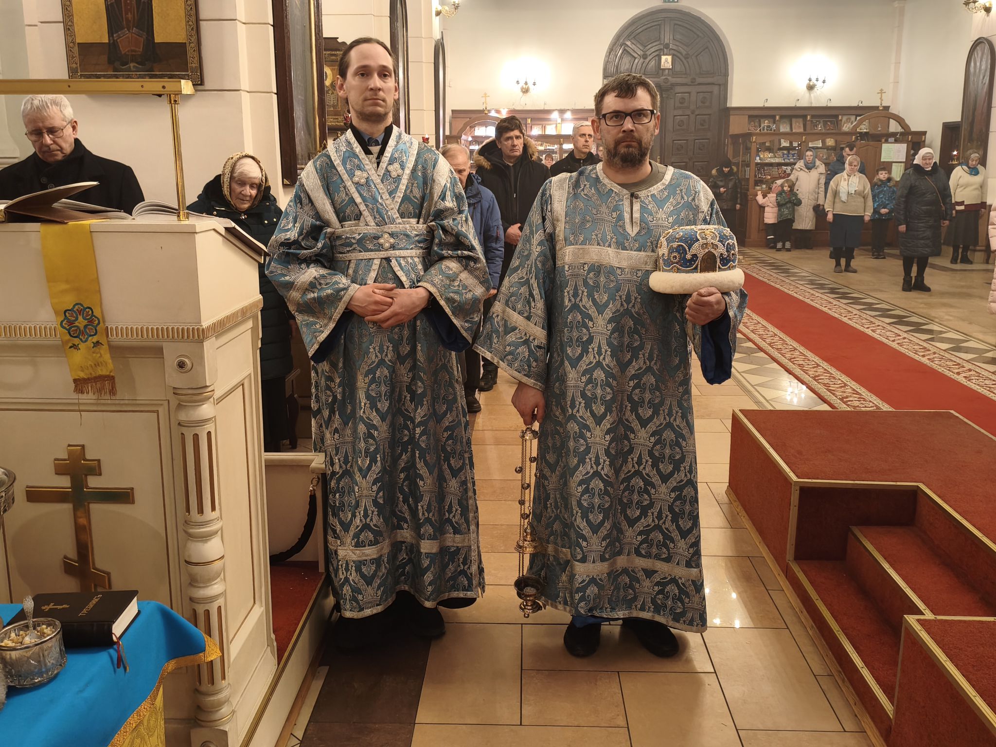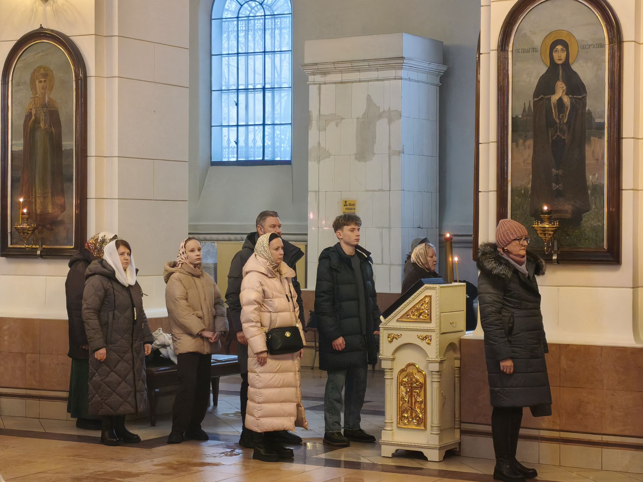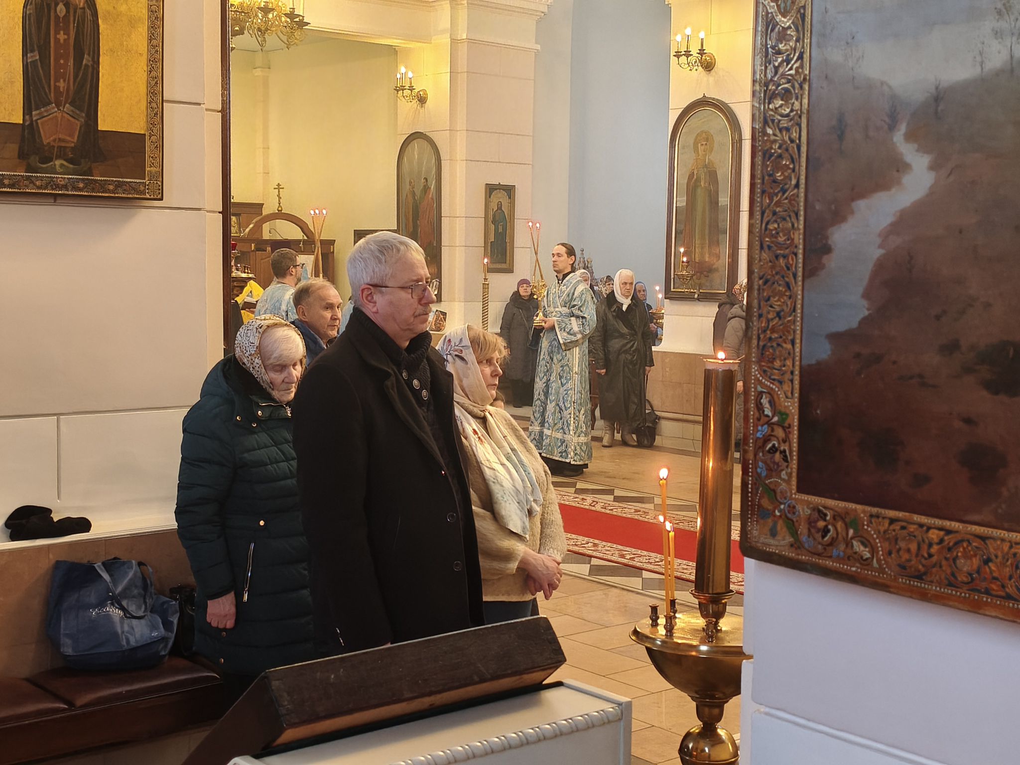 Вечером 14 февраля 2026 года, когда Церковь вступает в празднование двунадесятого торжества Сретения Господня и одновременно воспоминает Страшный Суд (Неделя мясопустная), в кафедральном соборе святых страстотерпцев Бориса и Глеба было совершено праздничное Всенощное бдение.