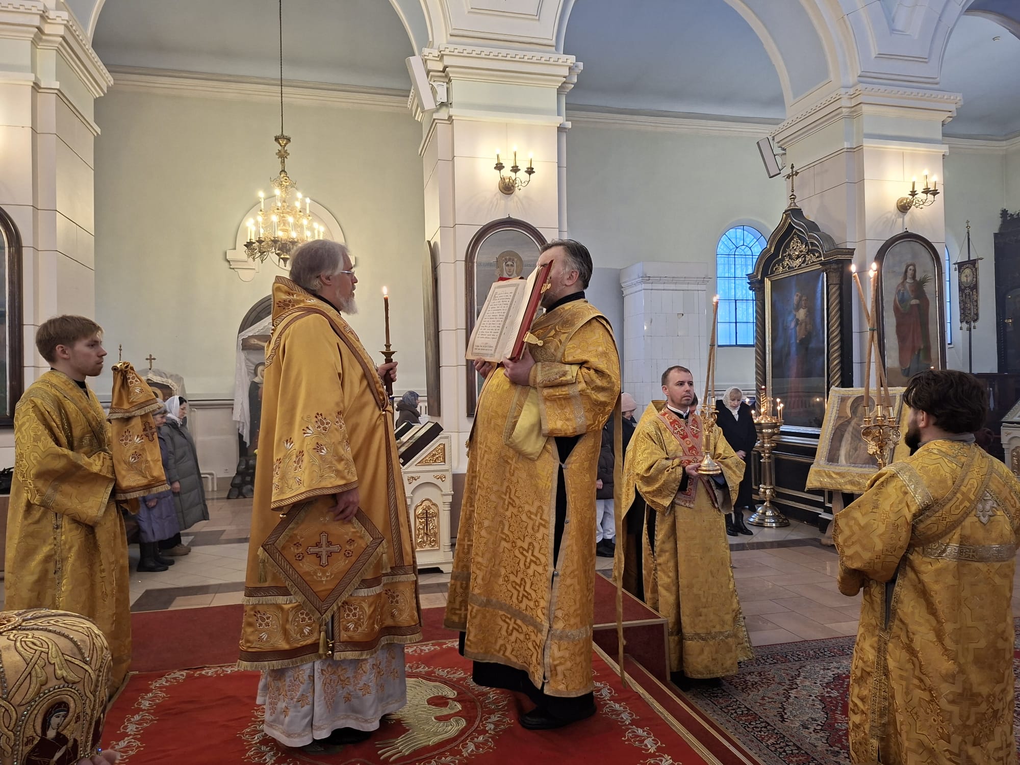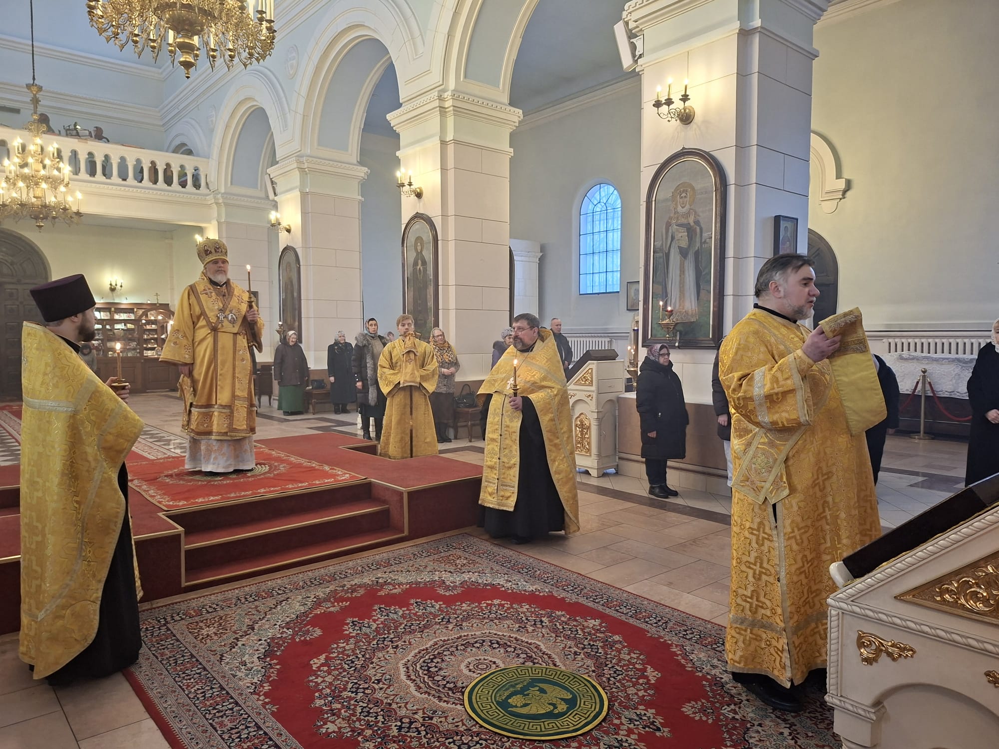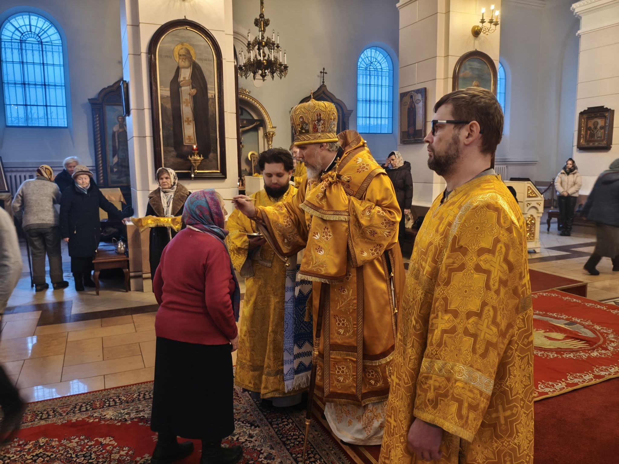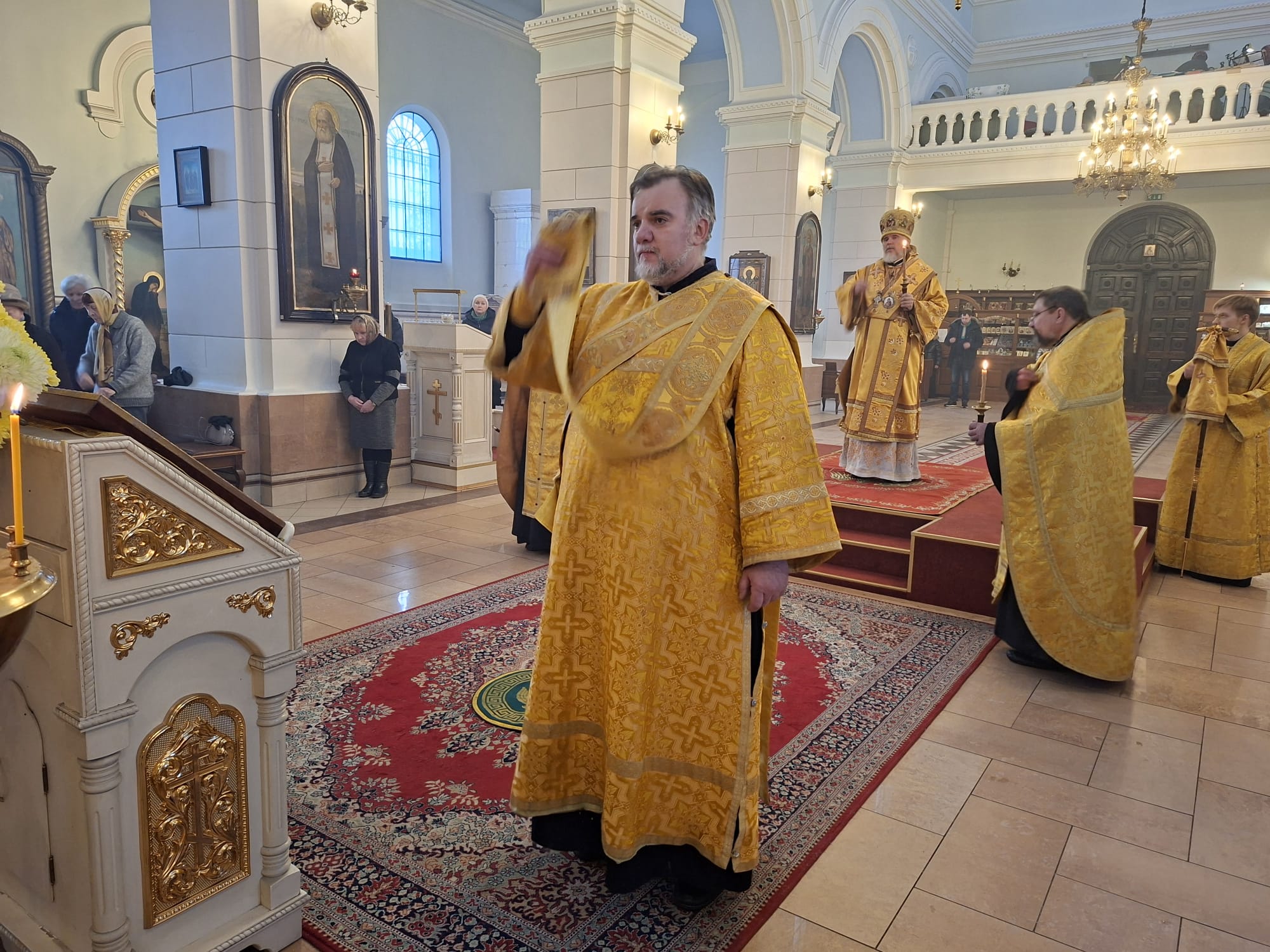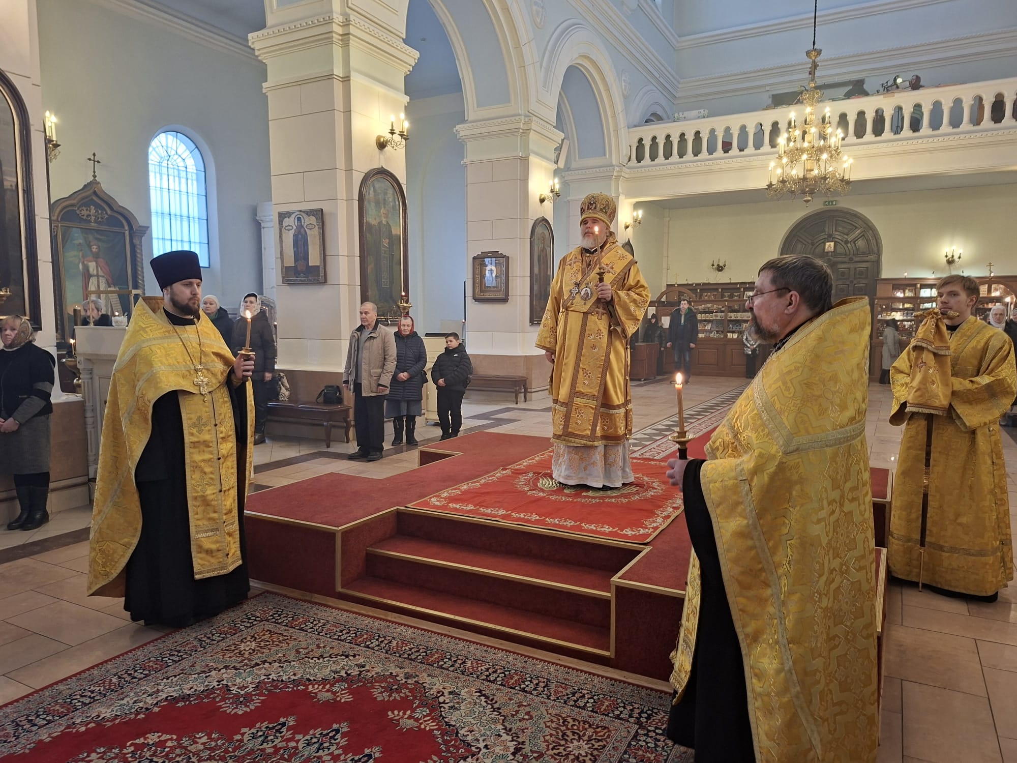 Вечером 21 февраля 2026 года, накануне Недели сыропустной (Прощёного воскресенья), в кафедральном соборе святых страстотерпцев Бориса и Глеба было совершено торжественное Всенощное бдение. Богослужение возглавил Высокопреосвященнейший Александр, Архиепископ Даугавпилсский и Резекненский. Правящему Архипастырю сослужили ключарь собора, благочинный Даугавпилсского округа священник Павел Ткаченко, клирик собора священник Валерий Тихонов. Диаконский чин возглавил клирик Рижской епархии ЛПЦ диакон Александр Акатов.