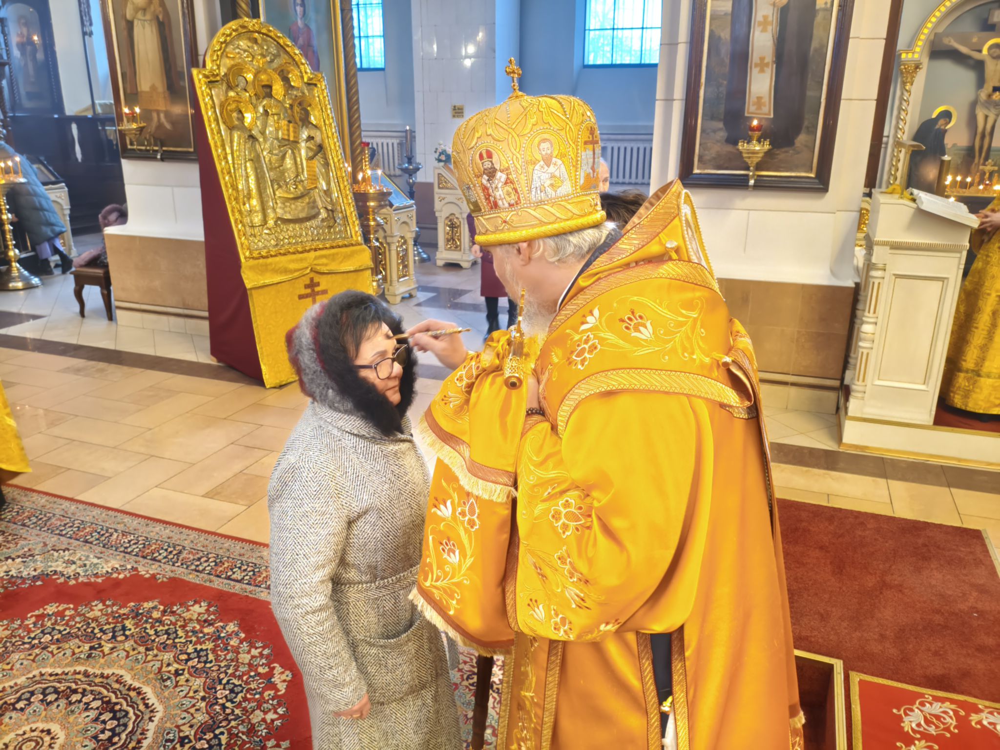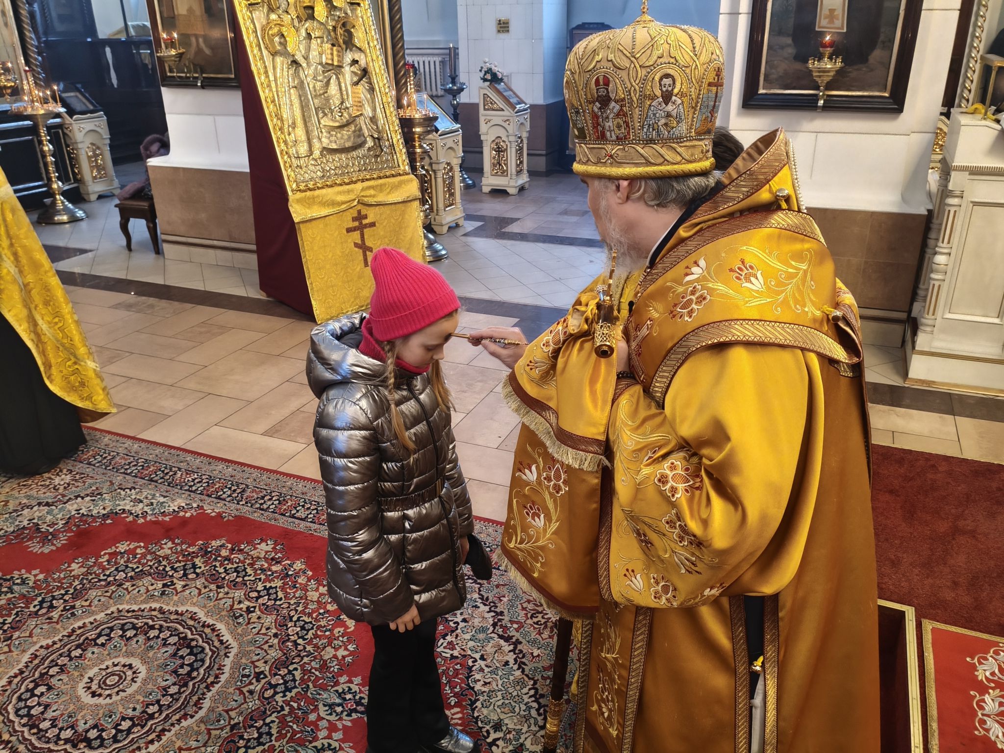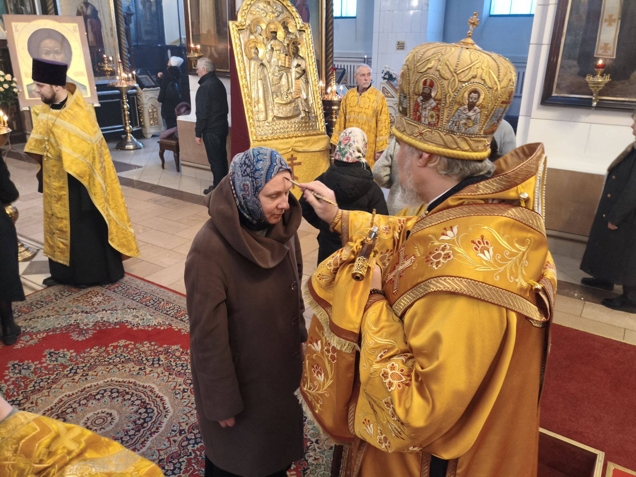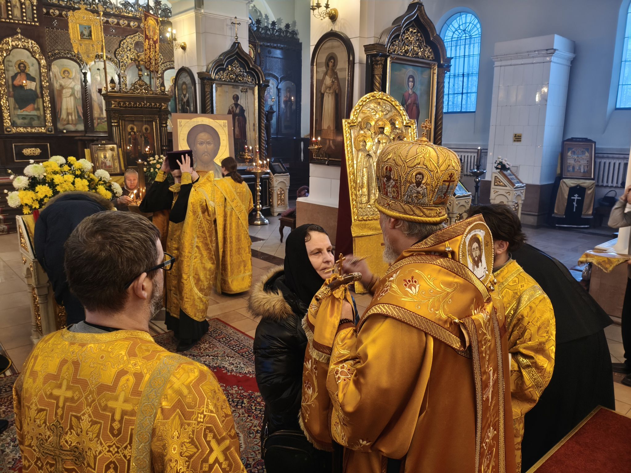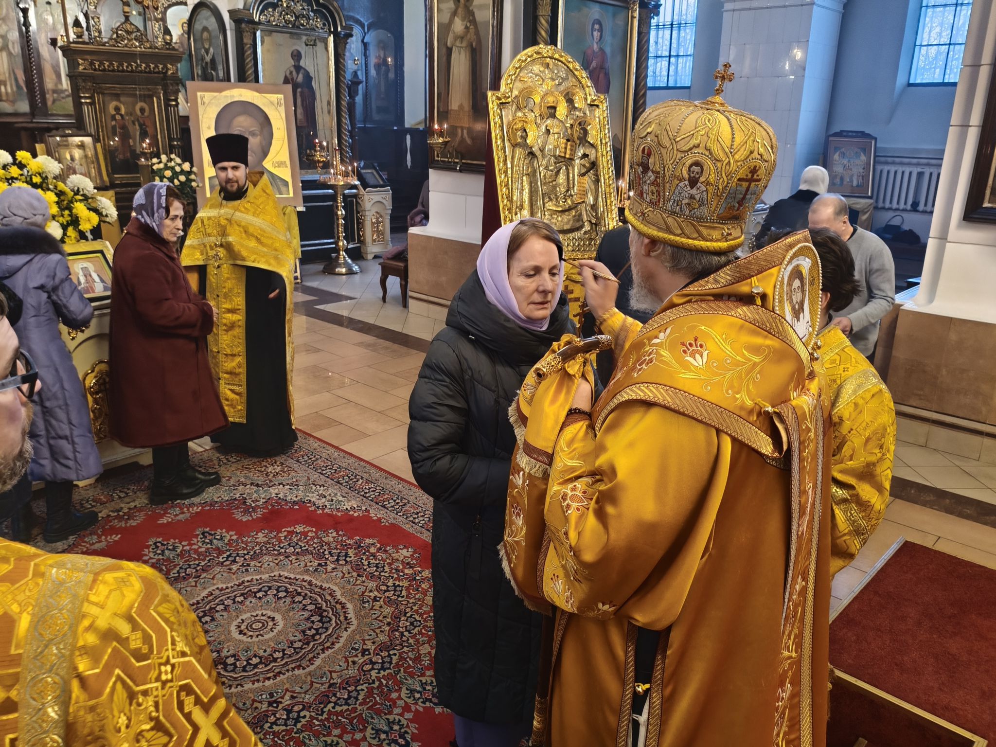 По прочтении Евангелия Высокопреосвященнейший Архипастырь помазывал верующих освященным елеем.