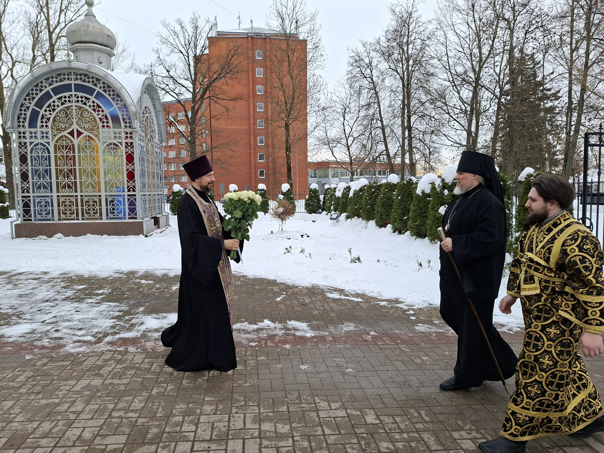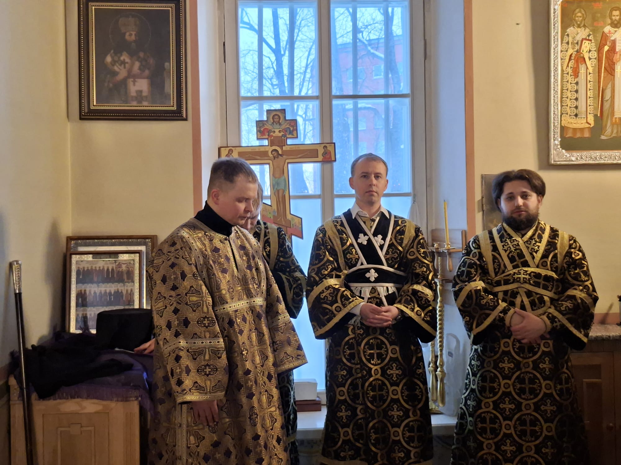 Его Высокопреосвященству сослужили: секретарь Даугавпилсско-Резекненской епархии архимандрит Спиридон (Сергеев), настоятель собора Рождества Пресвятой Богородицы г. Резекне, благочинный Резекненского округа протоиерей Виктор Теплов, клирики собора иерей Алексий Виноградов и иерей Александр Антонов. Диаконский чин возглавил клирик Рижской епархии ЛПЦ диакон Александр Акатов.