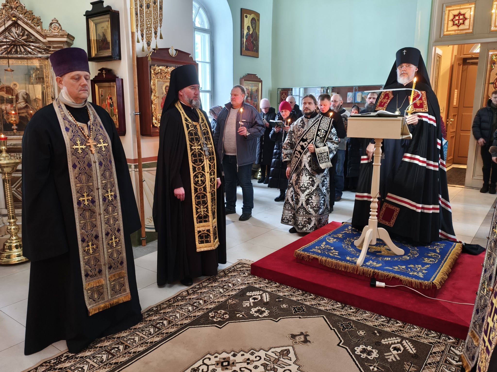 РЕЗЕКНЕ. Вечером 26 февраля 2026 года, в четверг первой седмицы Великого поста, Высокопреосвященнейший Александр, Архиепископ Даугавпилсский и Резекненский, совершил Великое повечерие с чтением заключительной части Великого покаянного канона преподобного Андрея Критского в соборе Рождества Пресвятой Богородицы города Резекне.